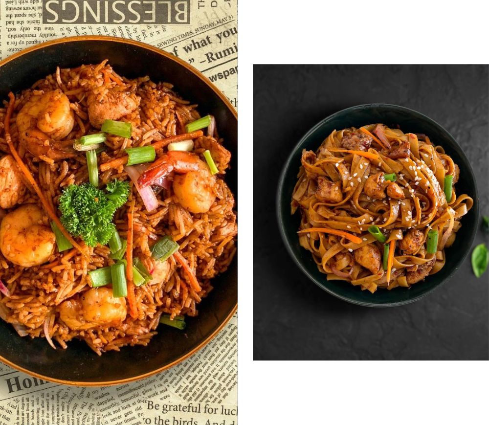 Fiery noodles fused with meat, veggies, and sauce. Stir-fried hot and fresh for big flavor in every bite.